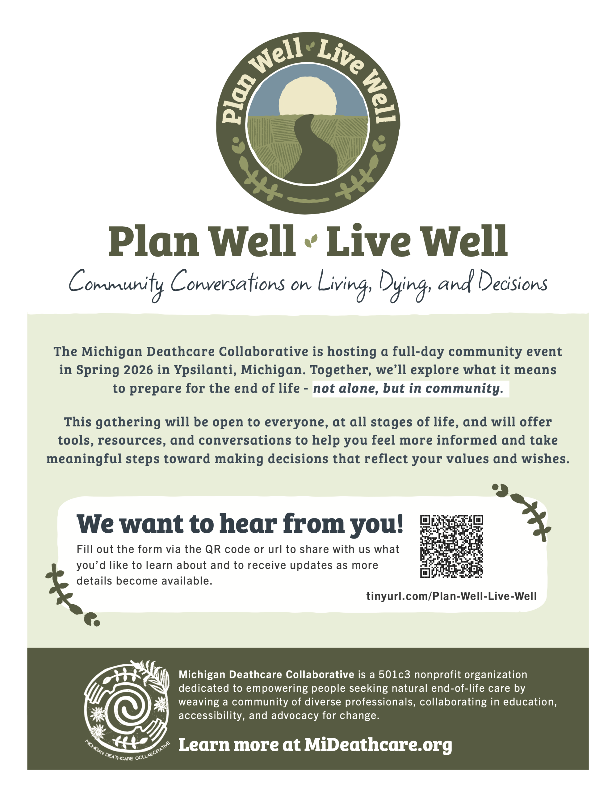 The Michigan Deathcare Collaborative is hosting a full-day community event on April, 11th 2026 in Ann Arbor, Michigan. Together, we’ll explore what it means to prepare for the end of life – not alone, but in community.